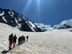 The chalet trip took place over ten days, with an alternating schedule of hiking and reading days, creating a balanced and relaxing routine. We embarked on several hikes, including up Tête Noir, the Prarion, Col de Tricot, Tête Rousse, and the Gorges of Diosaz. Each hike presented its challenges and came with breathtaking views, particularly the ascent to Tête Rousse, which involved crossing the glacier to the refuge at the top.