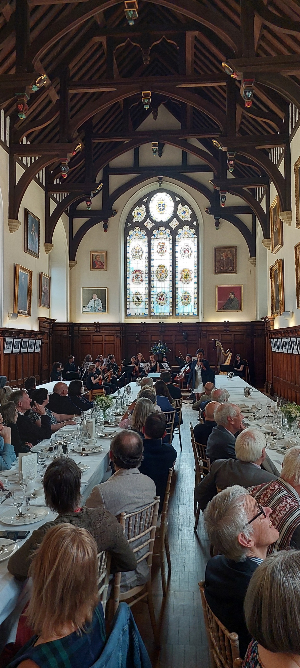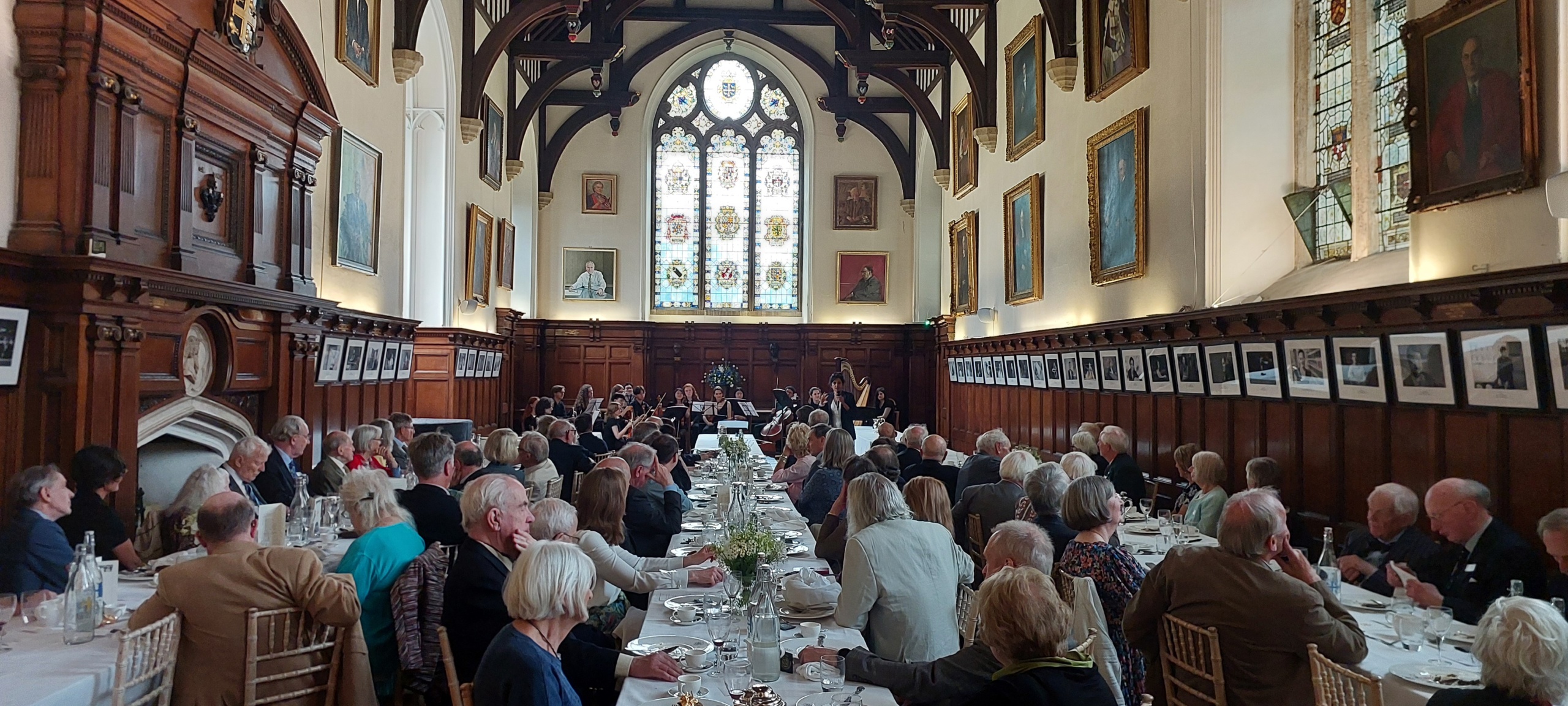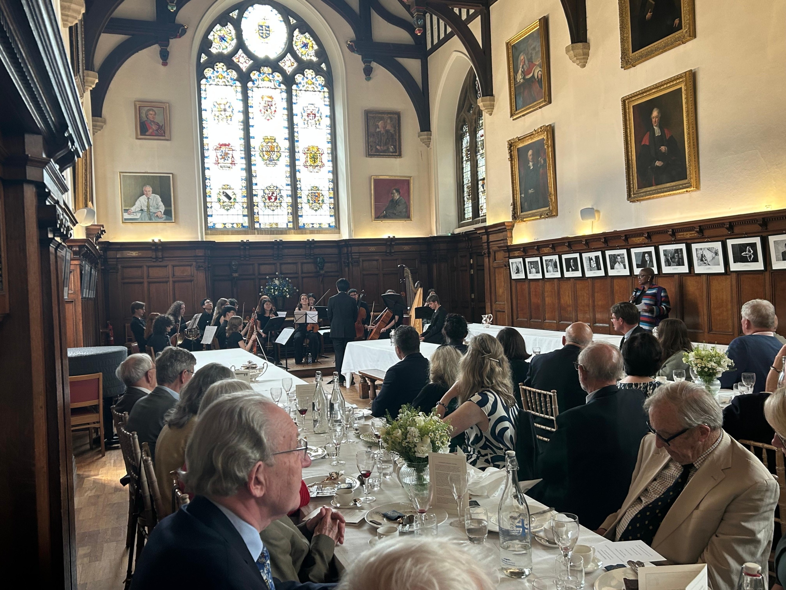 Before luncheon in the Hall, the Master, Baroness Amos, gave a warm welcome to all and provided an update on the life of the College. This was followed by Univ’s own Poet Laureate, Professor Pireeni Sundaralingham (1986, Psychology), who read a selection of her verses, some inspired by her work as a cognitive scientist. After lunch there was enchanting musical entertainment from the Fidelio Orchestra (Conductor: Maximillian Ren) which draws its musicians from Univ, Merton and Magdalen. They performed four pieces, all operatic works by Vincenzo Bellini (1801-1835): Oboe Concerto in E flat major featuring soloist Tom Kirby; ‘Overture’ from Norma; ‘Casta Diva’ from Norma featuring soprano Annika Kofilaine; and the duet ‘Si fino all’ore estreme’ from Norma with sopranos Fiona Macrae and Gigi McCauley.