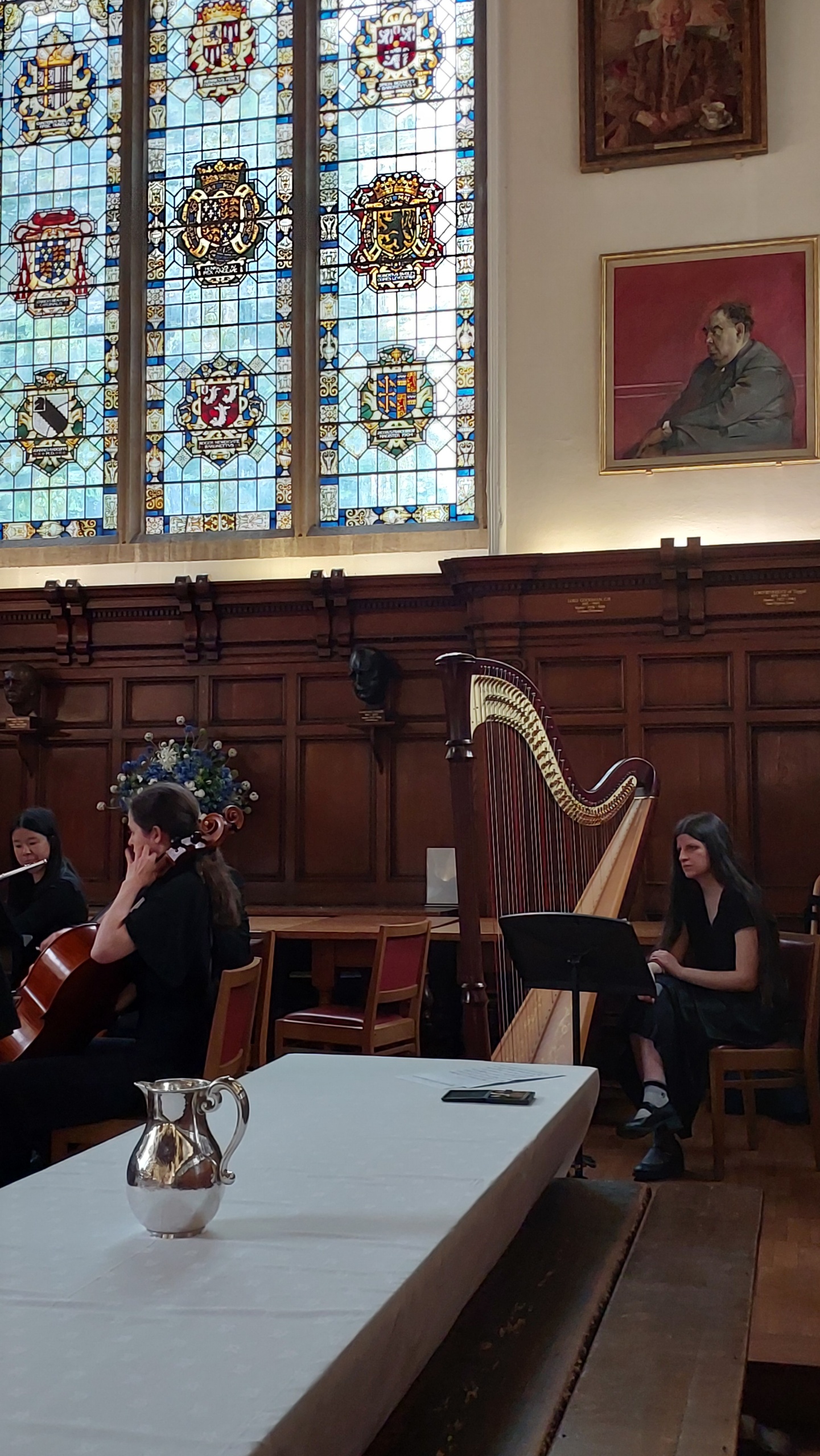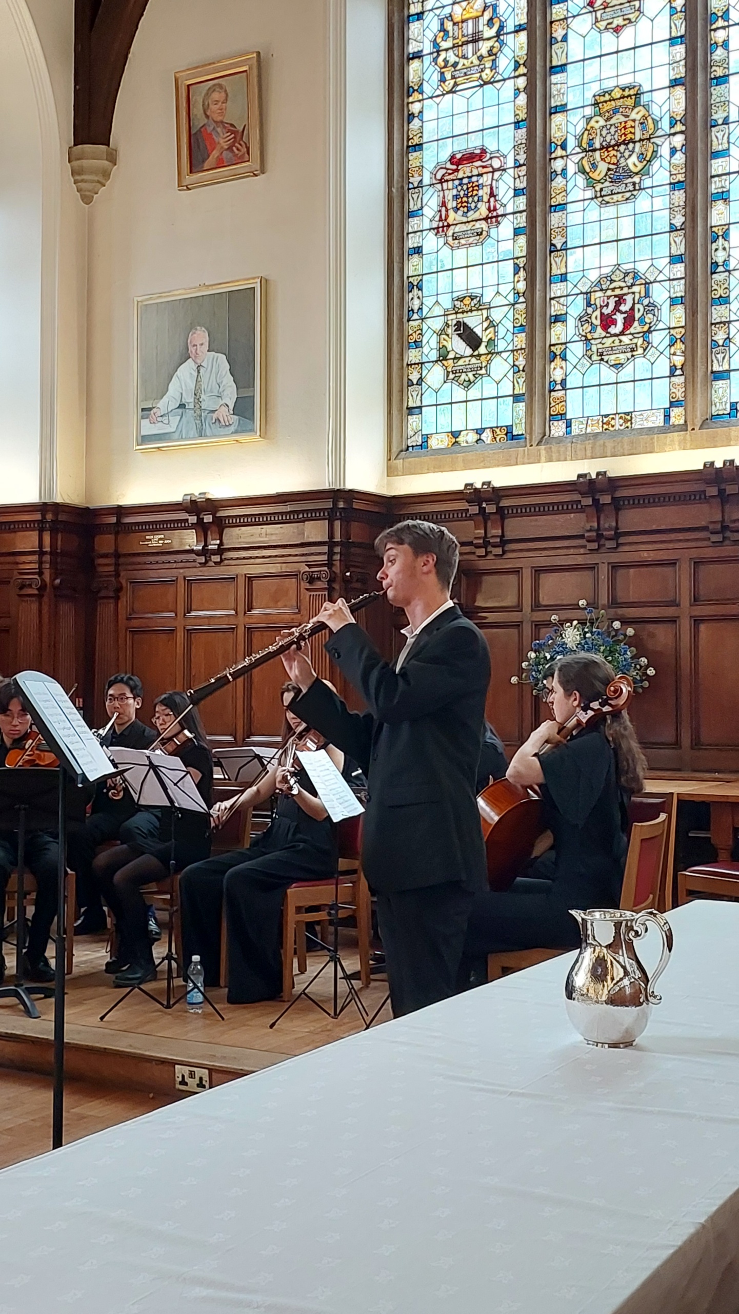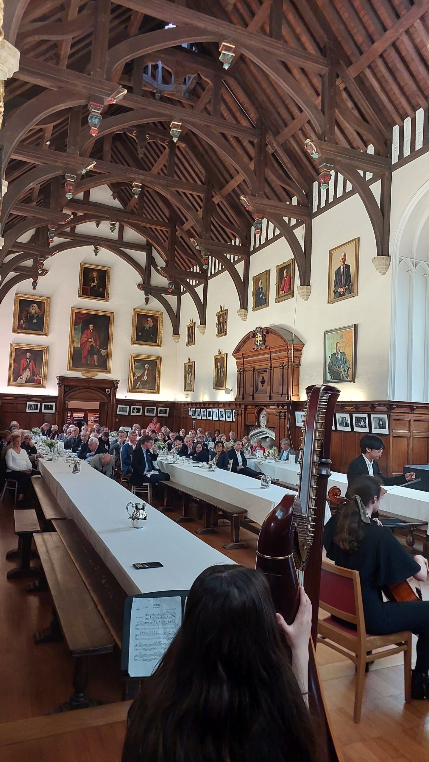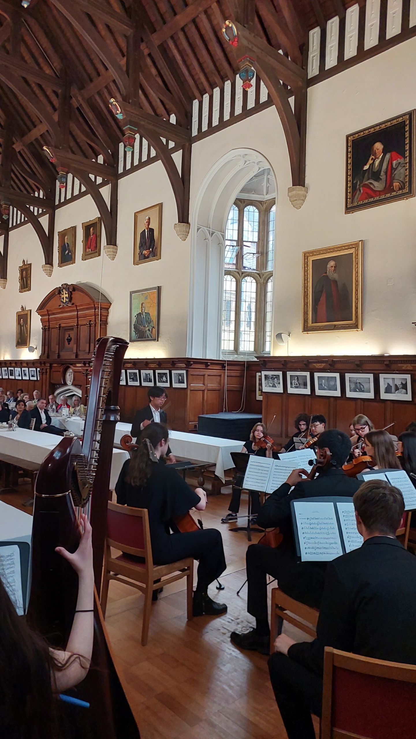 Before luncheon in the Hall, the Master, Baroness Amos, gave a warm welcome to all and provided an update on the life of the College. This was followed by Univ’s own Poet Laureate, Professor Pireeni Sundaralingham (1986, Psychology), who read a selection of her verses, some inspired by her work as a cognitive scientist. After lunch there was enchanting musical entertainment from the Fidelio Orchestra (Conductor: Maximillian Ren) which draws its musicians from Univ, Merton and Magdalen. They performed four pieces, all operatic works by Vincenzo Bellini (1801-1835): Oboe Concerto in E flat major featuring soloist Tom Kirby; ‘Overture’ from Norma; ‘Casta Diva’ from Norma featuring soprano Annika Kofilaine; and the duet ‘Si fino all’ore estreme’ from Norma with sopranos Fiona Macrae and Gigi McCauley.